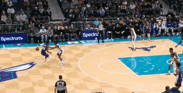 米勒油漆区无球起手执行位置更高的“Spanoulis action”,借三球中路下掩护上提后接手递手,随后立即衔接翻转掩护角度后的边路挡拆发起,炸球上步急停坚决出手持球三分,惩罚庄神的弱延误。